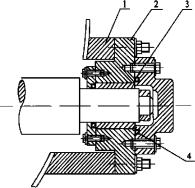 老產(chǎn)品的軸承檢修困難。由于各個軸的軸承體均焊在外殼上,設備運行一定時間后軸承及密封件需要更換時,密封件無法取出,使軸系維修產(chǎn)生困難。設備改造成SF型后軸系部分采用圖2所示結構。 這種結構型式在軸承及密封件需要更換時,可將右端支承體部分取下,更換密封件,而選用O型密封圈密封不僅減少了摩擦力,而且密封效果也更理想。