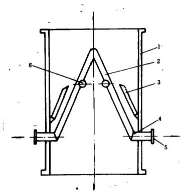 1-簡體2—活動(dòng)?xùn)鸥窬W(wǎng)3-防渦流板4—收球網(wǎng)板5—出球口6—轉(zhuǎn)動(dòng)軸