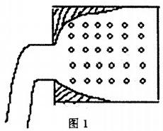 一,對凝汽器不合理的部分進行改造。在膠球死區(qū)的位置(圖1的陰影部分)點焊不銹鋼金屬網(wǎng),使其成弧狀。便膠球流動,使膠球脫離死區(qū)的范圍。
