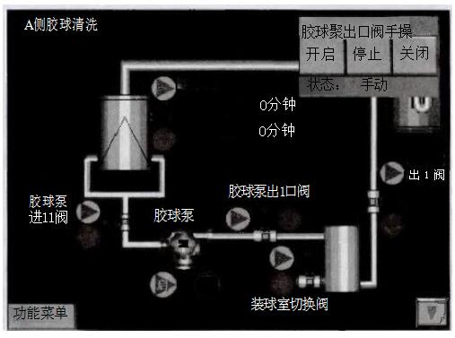 (3)投入膠球(每次不低于1000個(gè))進(jìn)行清洗,清洗40min后將裝球室切換閥切至收球位置再收球30min。