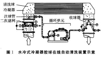 水冷式冷凝器膠球在線自動(dòng)清洗原理