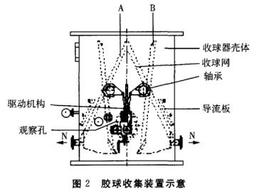 水冷式冷凝器膠球在線自動(dòng)清洗裝置(見圖1)工作原理為,通過清洗泵將膠球送人列管式冷凝器管程中,循環(huán)水壓力大約在0. 4MPa,清洗膠球依靠循環(huán)水壓力隨著循環(huán)水在冷凝器管內(nèi)流動(dòng),通過膠球與冷凝器管壁間的相互摩擦來(lái)清洗掉冷凝器管壁上的沉積物。在冷凝器出口端利用膠球收球器回收膠球,膠球的回收是通過收集裝置的驅(qū)動(dòng)機(jī)構(gòu)來(lái)實(shí)現(xiàn)的(見圖2),利用驅(qū)動(dòng)機(jī)構(gòu)帶動(dòng)循環(huán)水管道內(nèi)部收球網(wǎng)形狀的改變,形成正“八”字或者倒“八”字形,以達(dá)到收集膠球的目的。然后,再將回收的膠球送至清洗泵,由清洗泵將膠球再次送至循環(huán)水人口處,這樣就形成一個(gè)清洗循環(huán)。我公司采用特殊的清洗泵來(lái)實(shí)現(xiàn)膠球在線清洗,由于循環(huán)過程是自動(dòng)的、毋需停車,時(shí)間間隔短,沉積物在形成初期就被擦掉,使管壁永保潔凈,始終保持冷凝器的換熱效率處于佳狀態(tài),克服由于污垢的產(chǎn)生而引起冷凝器換熱效率的下降,從而降低蒸汽消耗,提高汽輪機(jī)的工作效率。