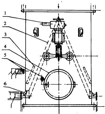 1—電動執(zhí)行機構(gòu)2—網(wǎng)板3—導流板4—人孔5—測壓管6—膠球引出管