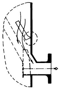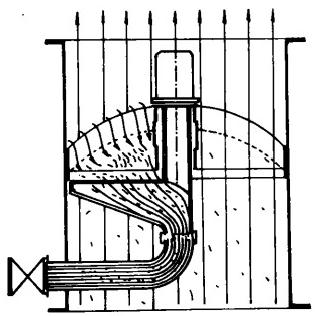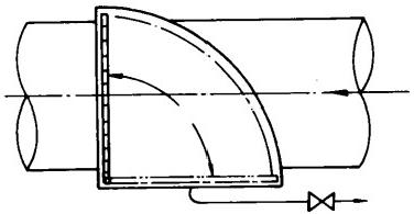 冷卻水中含有各類雜物進入凝汽器后會堵塞管板及管口處,不但減少冷卻水流量、降低循環(huán)倍率,還阻礙膠球?qū)鋮s管的清洗,在冷卻水泵前雖設(shè)有攔污柵和一次濾網(wǎng),但往往不能把雜物清理于凈。為了確保水質(zhì)清潔,還需在靠近凝汽器入口處加裝二次濾網(wǎng)來清理水中雜物。由于二次濾網(wǎng)處在凝汽器入口附近,其位置限制了它不能象一次濾網(wǎng),攔污柵那樣占據(jù)很大的空間,尤其是在老機組改造項目中所給的許用空間小,只能在管道上的直段或利用彎頭的位置安裝二次濾網(wǎng)。而早期的二次濾網(wǎng)相當簡單直觀,如翻板式(見圖4),隨后出現(xiàn)了固定切向外旋式、帶導向蝶閥外旋式,……等型式的二次濾網(wǎng)。直到目前為止,上述各種型式的二次濾網(wǎng)包括原始的翻板式仍有電廠在使用,由于排污性能差,當二次濾網(wǎng)被雜物堵塞而不能排污沖洗時,只能停機人工清除雜物。嚴重影響了機組經(jīng)濟效益。
