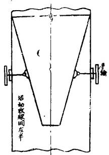 關(guān)于開關(guān)膠球清洗裝置也有二種方案,一種是現(xiàn)采用的,優(yōu)點是開關(guān)方便一些;缺點是杠桿系統(tǒng)和旋轉(zhuǎn)軸都“貫穿”循環(huán)水管,增大了水阻,即使處于“短路”狀態(tài)此水阻仍去不掉。另一種利用類似于潤門開關(guān),在收球網(wǎng)之外開和關(guān),(圖3乙)它在“短路”狀態(tài)時,開啟機構(gòu)已旋出循環(huán)水管外,可減少短路時的水阻,當(dāng)然機構(gòu)稍復(fù)雜一點,開關(guān)稍費事。我們擬在”3機采用這種機構(gòu),以和“4機對比。