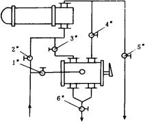 膠球清洗技術(shù)是20世紀(jì)80年代發(fā)展起來的冷卻器清洗技術(shù),先在熱電行業(yè)冷卻水系統(tǒng)中使用,它需要膠球清洗泵及膠球收、放的旁路設(shè)備,系統(tǒng)較復(fù)雜。在試驗的基礎(chǔ)上研制出的一種用于冷卻器的新型膠球在線清洗器,其結(jié)構(gòu)見圖1。它具有水流定向切換和特殊的膠球收、放機構(gòu),可利用循環(huán)水的系統(tǒng)動力實現(xiàn)在線清洗。