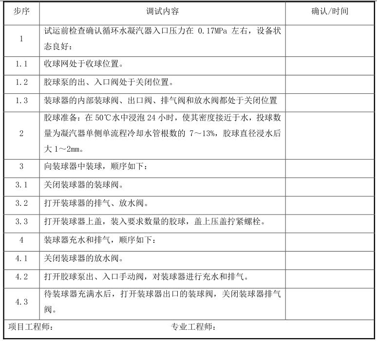 膠球清洗裝置系統(tǒng)調(diào)試措施詳細(xì)說明及表格?
