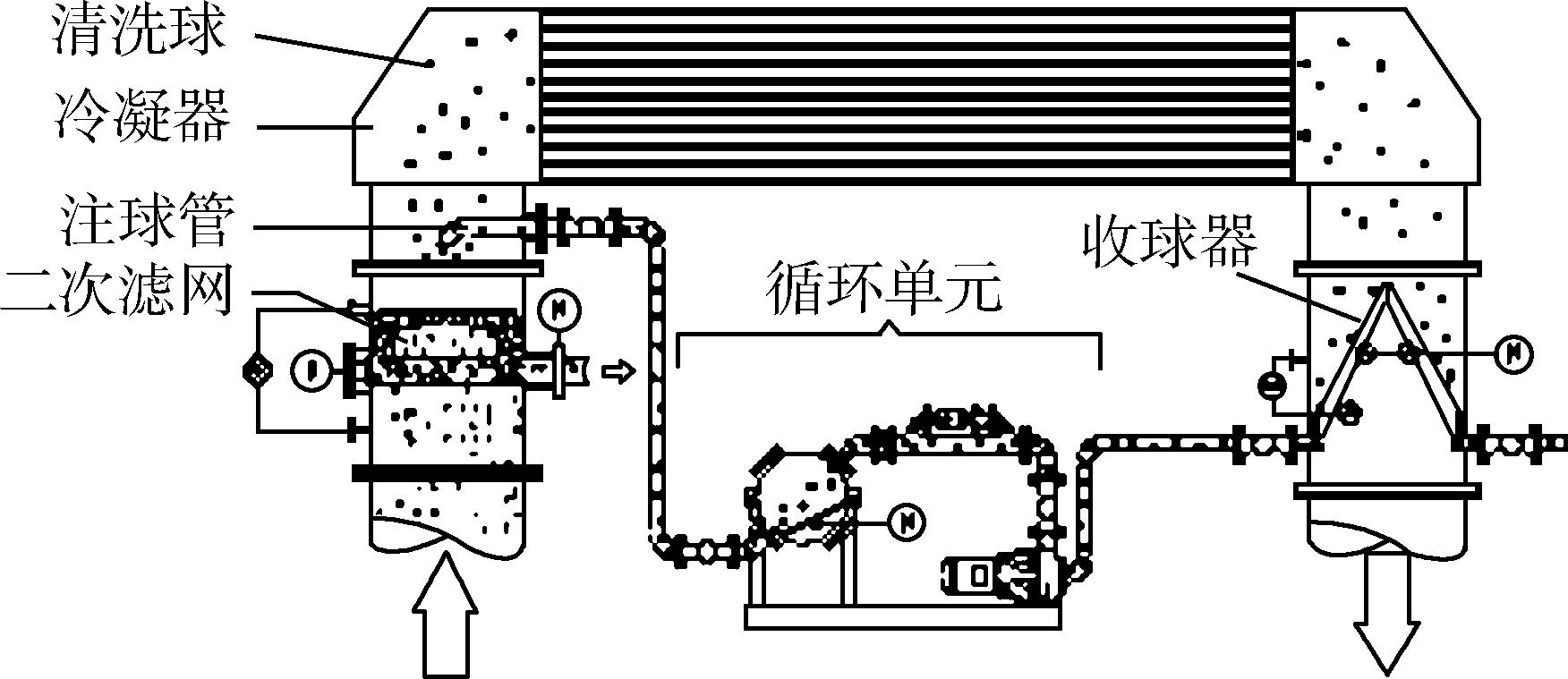圖1水冷式冷凝器膠球在線自動(dòng)清洗裝置示意
