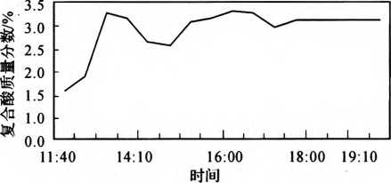 圖1凝汽器酸洗酸濃度變化曲線